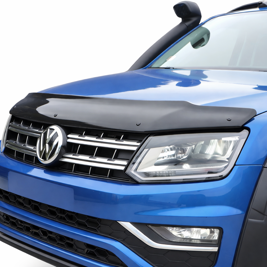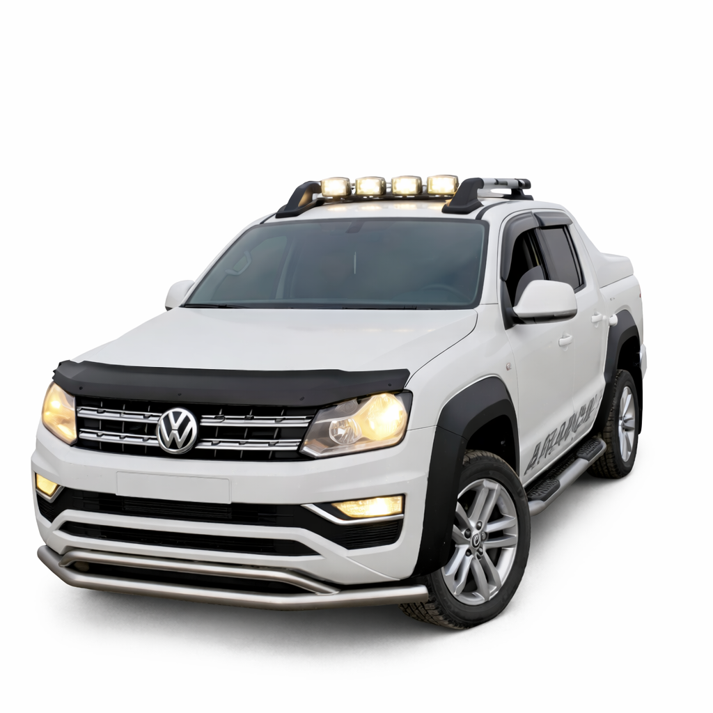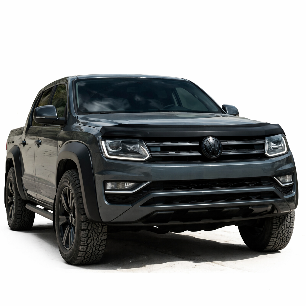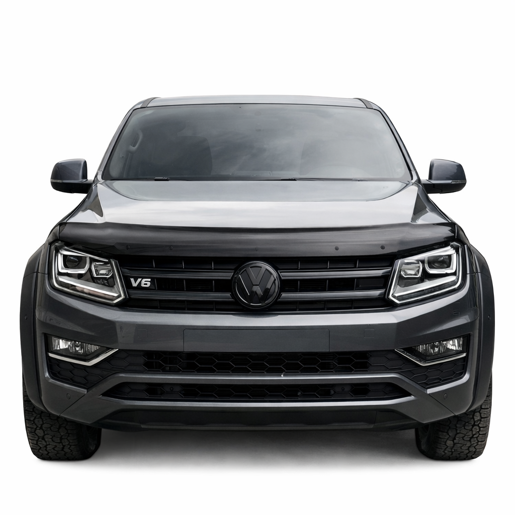 The VW Amarok is built for the toughest terrain, but its broad, upright front profile is a prime target for “road rash” from motorway stones, grit, and insects. Our Gloss Black Bonnet Guard (Bug Deflector) provides a robust, stylish barrier that redirects debris away from your paintwork and windscreen. Prevent unsightly stone chips and protect your hood from the elements while adding a dominant, “Black Edition” edge to your pickup.
